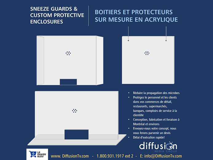 Diffusion Media Group vous offre la conception et la création de tous types de boitiers et protecteurs en acrylique pour votre commerce.